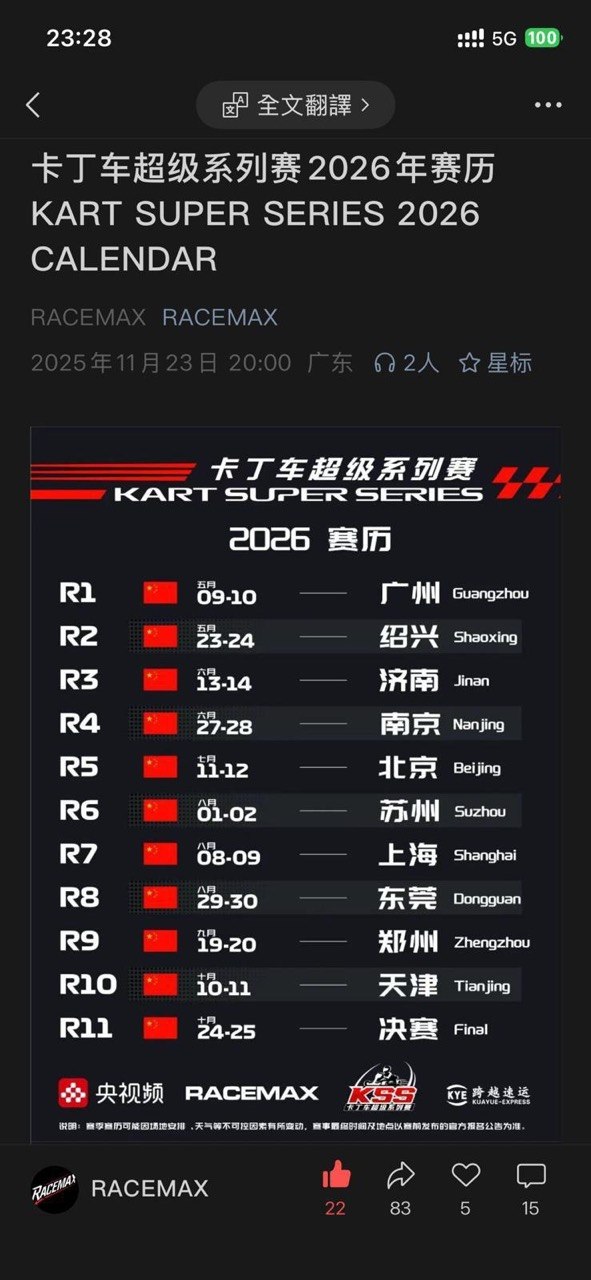 | R5 | 天津 | 9/18–20 | 極速星辰國際卡丁車場 |